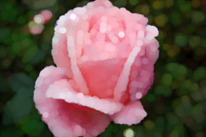 Example picture of rose without changes and the picture made of colorful blurry circles: